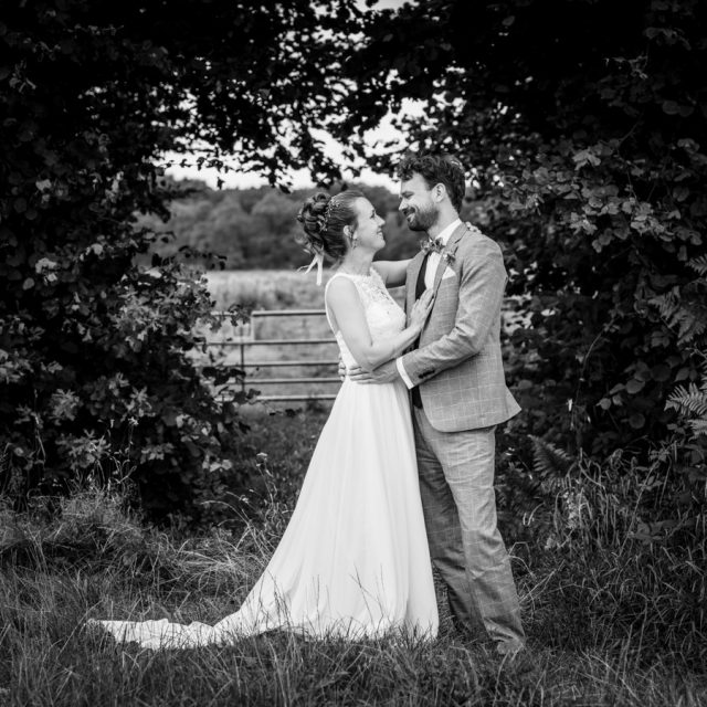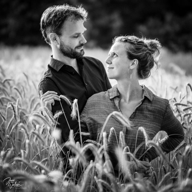 Am Fuße des Weyerbergs machten wir dann auch eine Pause, um das Brautpaar zu fotografieren. Das gute dabei war: wir hatten schon geübt. Das Brautpaar hatte einige Wochen zuvor ein Engagement-Shooting in Anspruch genommen. Da hatten wir die Trauzeremonie durchgesprochen und Posen für das Hochzeitspaar ausprobiert. Und wir hatten wunderbare Locations mit Sonnenblumen, Kornfeldern und romantischen Hecken entdeckt, die wir jetzt erneut besuchten. So war es ein Leichtes, in dieser Umgebung ein tolles Brautpaarshooting durchzuführen - die Bilder belegen das!